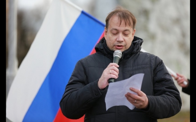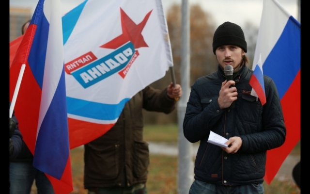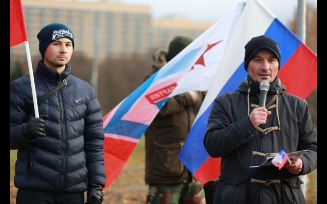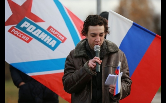 Участники мероприятия подошли к подножию памятника с государственными флагами России и партии "РОДИНА". Ведущий клуба "Родина на Неве" Дмитрий Жвания выступил со вступительной речью: