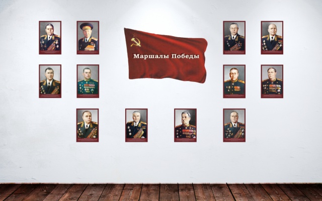 Проект посвящен 70-летию Победы советского народа в Великой Отечественной войне. В нём используются изображения, специально реконструированные для данной экспозиции. Фотографии прошли обработку, включающую в себя прорисовку черно-белых кадров, реставрацию и колоризацию изображений. В работе принимала участие группа специалистов по военно-историческому костюму и наградам. Таким образом, данные фото можно расценивать как уникальные культурные и военно-исторические артефакты. В состав экспозиции вошли парадные портреты 12 маршалов Советского Союза, чей вклад в Победу наиболее высок, а авторитет как военачальников не вызывает сомнений.