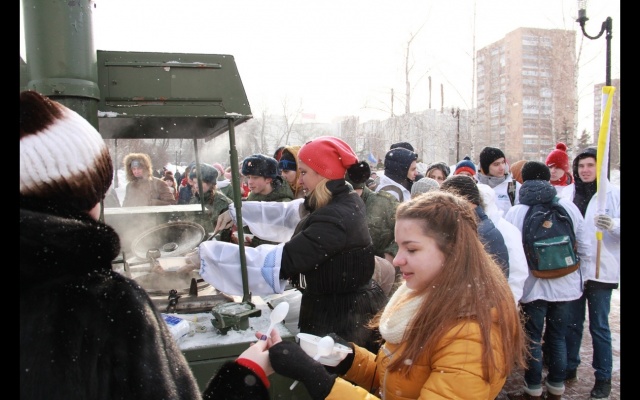 Для участников торжественного мероприятия на Площади Памяти Самарское региональное отделение партии "РОДИНА" организовало работу полевой кухни.