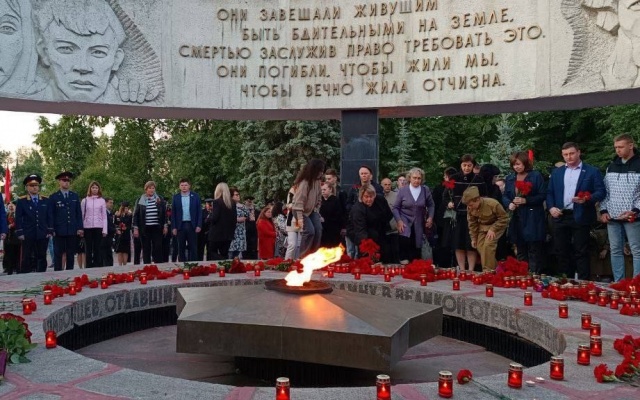 Почтив память сограждан, чья жизнь оборвалась в годы Великой Отечественной войны, собравшиеся зажгли свечи памяти и возложили цветы к Вечному огню.